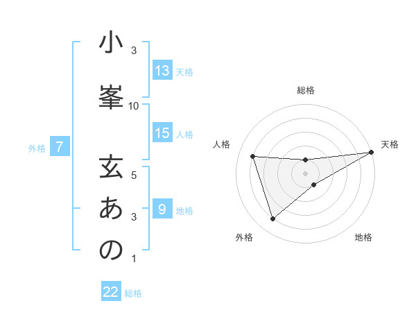 小峯 玄あのさんの天格は13画の5点!