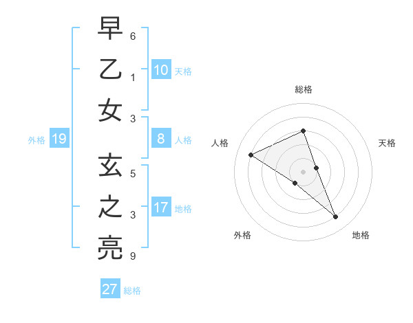早乙女 玄之亮さんの総格は27画の3点!