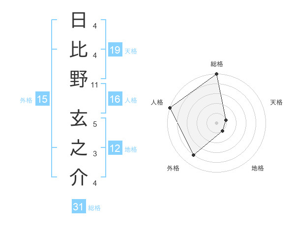 日比野 玄之介さんの外格は15画の4点!