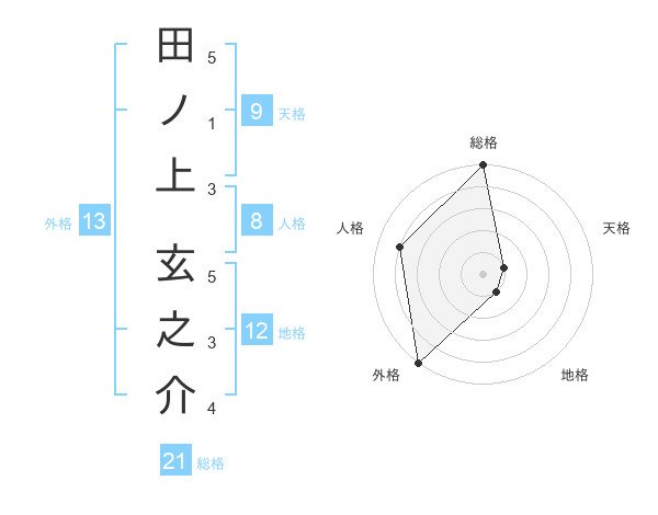 田ノ上 玄之介さんを姓名の画数から五運を鑑定