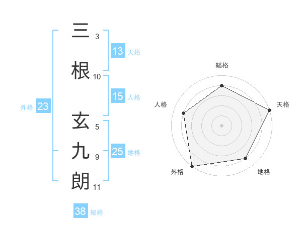 三根 玄九朗さんを姓名の画数から五運を鑑定