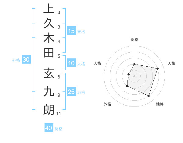 上久木田 玄九朗さんを姓名の画数から五運を鑑定