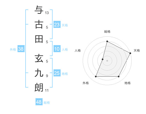 与古田 玄九朗さんの天格は23画の5点!
