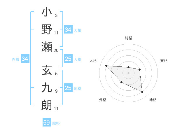 小野瀬 玄九朗さんを姓名の画数から五運を鑑定