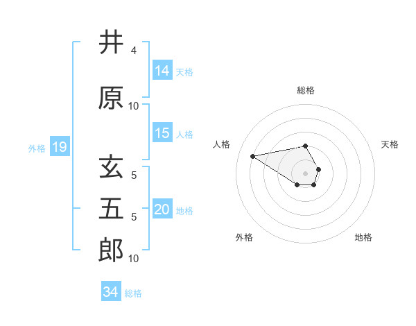 井原 玄五郎さんを姓名の画数から五運を鑑定