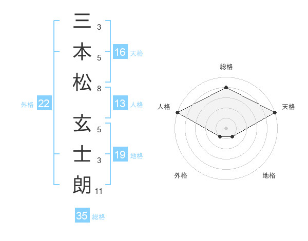 三本松 玄士朗さんを姓名の画数から五運を鑑定
