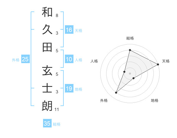 和久田 玄士朗さんの天格は16画の5点