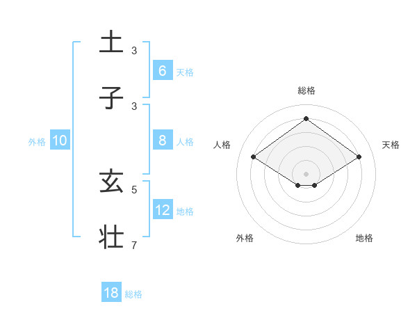土子 玄壮さんを姓名の画数から五運を鑑定