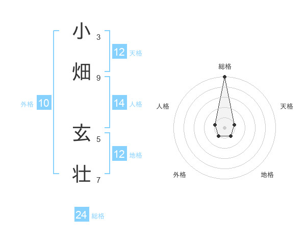 小畑 玄壮さんを姓名の画数から五運を鑑定
