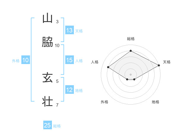 山脇 玄壮さんの天格は13画の5点!