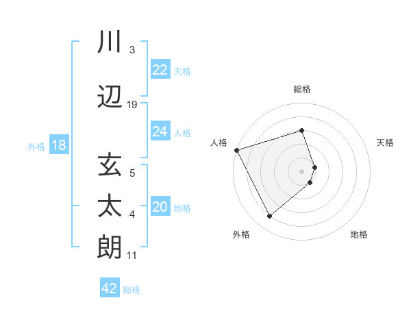 川辺 玄太朗さんを姓名の画数から五運を鑑定