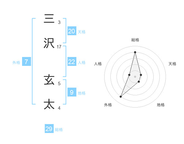 三沢 玄太さんを姓名の画数から五運を鑑定