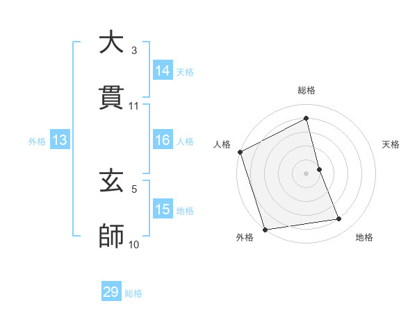 大貫 玄師さんを姓名の画数から五運を鑑定