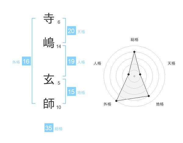寺嶋 玄師さんの外格は16画の5点!