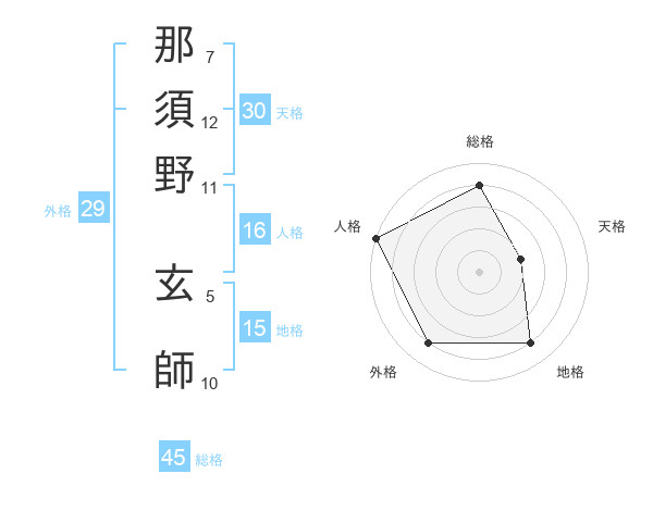 那須野 玄師さんを姓名の画数から五運を鑑定