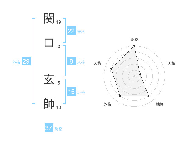 関口 玄師さんの総格は37画の5点!