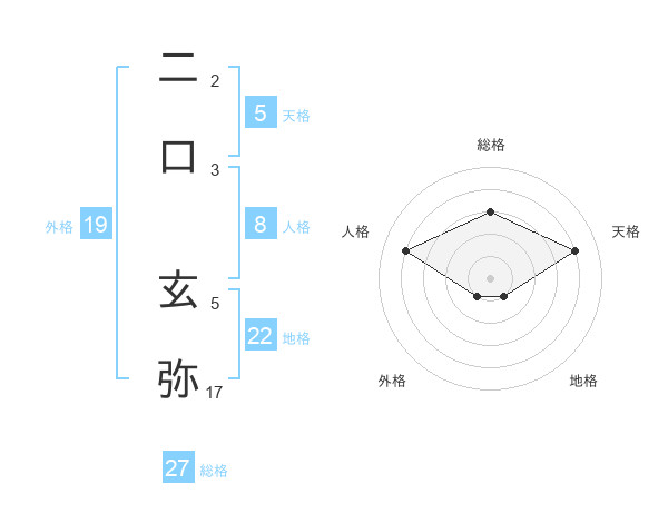 二口 玄弥さんを姓名の画数から五運を鑑定