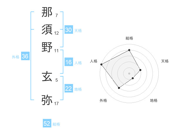 那須野 玄弥さんを姓名の画数から五運を鑑定