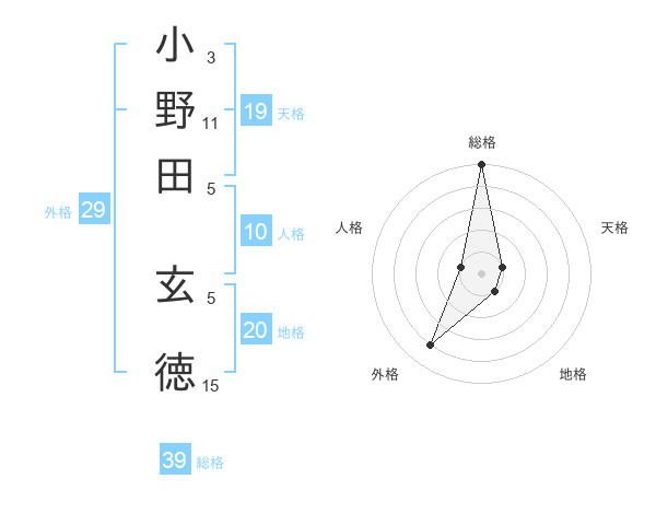 小野田 玄徳さんの総格は39画の5点!
