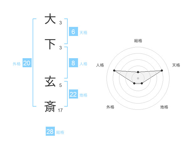 大下 玄斎さんを姓名の画数から五運を鑑定