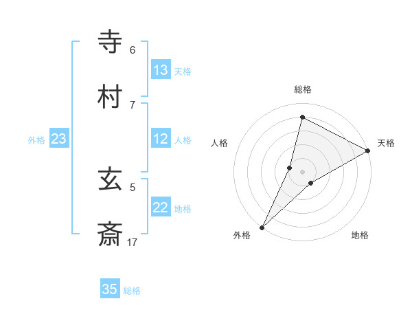 寺村 玄斎さんの天格は13画の5点!