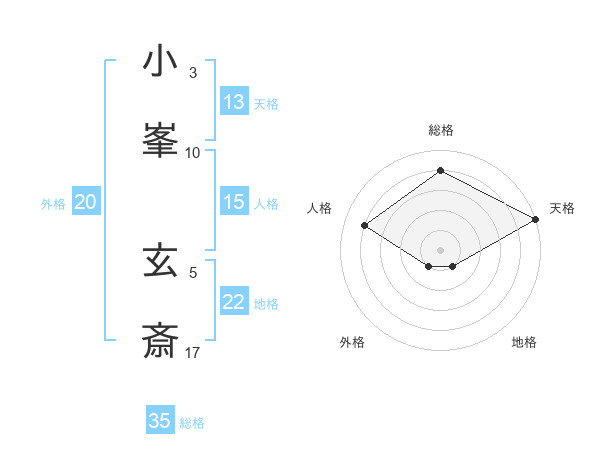 小峯 玄斎さんを姓名の画数から五運を鑑定