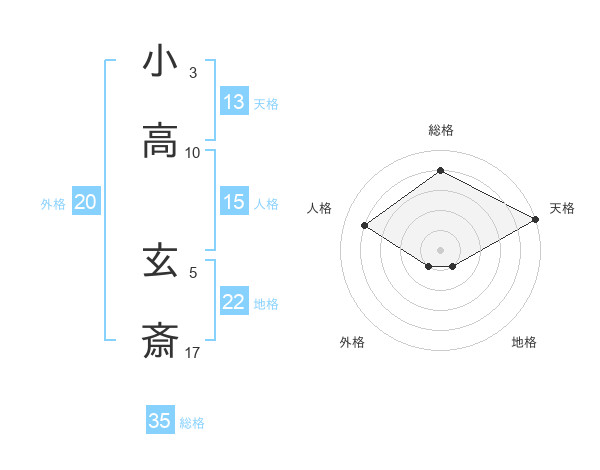 小高 玄斎さんの総格は35画の4点!