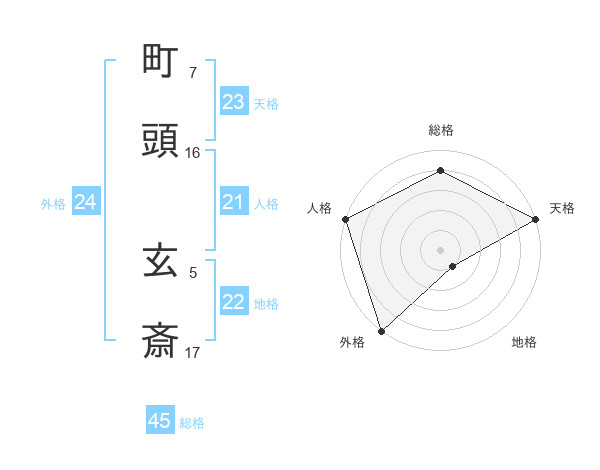 町頭 玄斎さんを姓名の画数から五運を鑑定