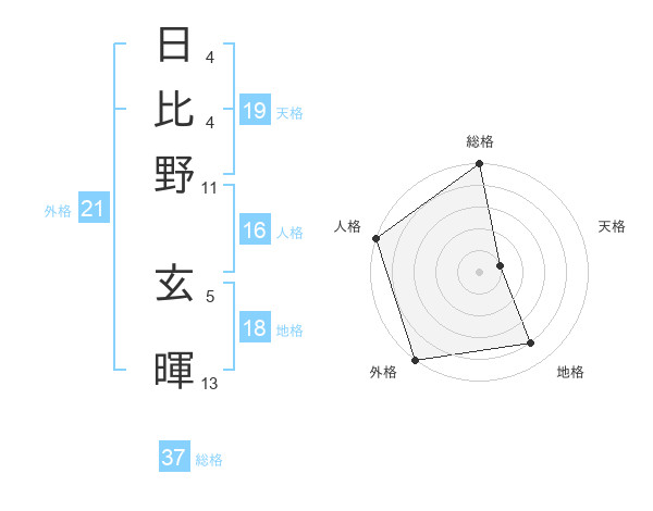 日比野 玄暉さんを姓名の画数から五運を鑑定