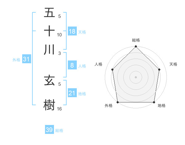 五十川 玄樹さんを姓名の画数から五運を鑑定