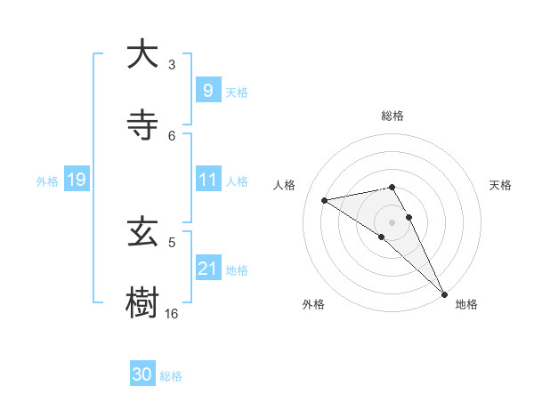 大寺 玄樹さんの総格は30画の2点!