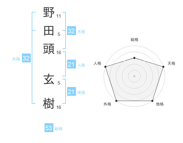 野田頭 玄樹さんの総格は53画の3点!