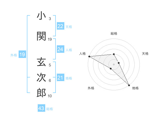 小関 玄次郎さんを姓名の画数から五運を鑑定