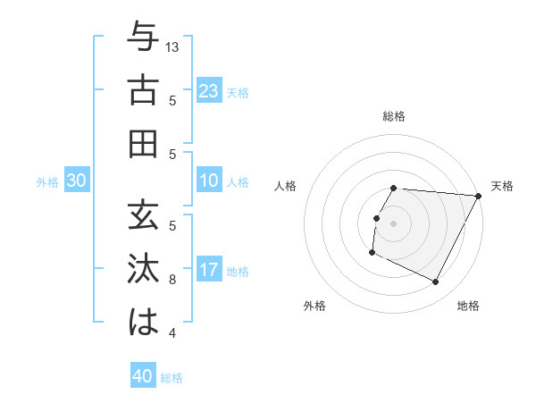 与古田 玄汰はさんを姓名の画数から五運を鑑定