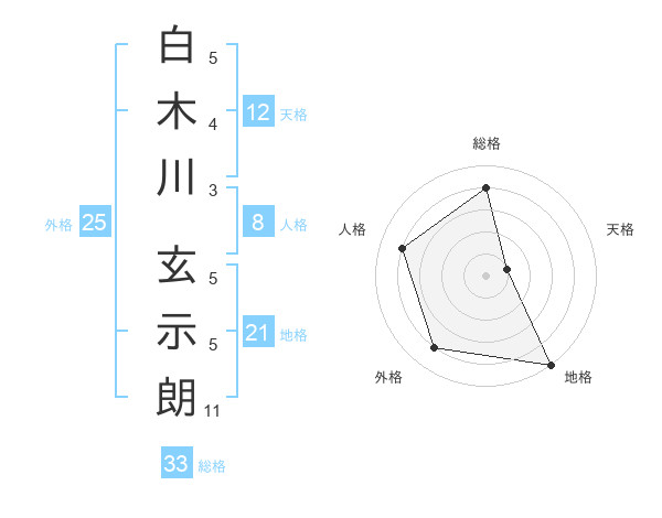 白木川 玄示朗さんを姓名の画数から五運を鑑定