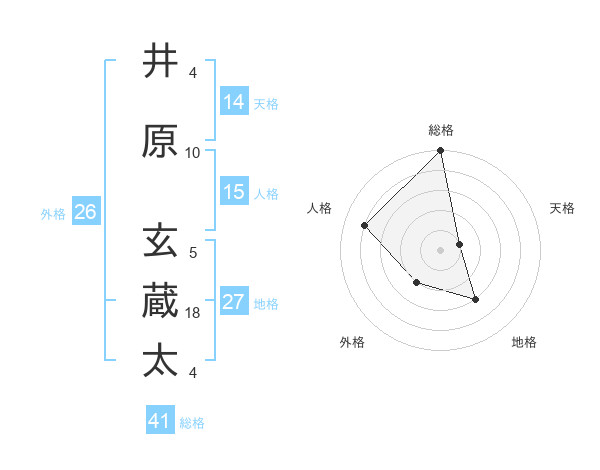 井原 玄蔵太さんの総格は41画の5点!
