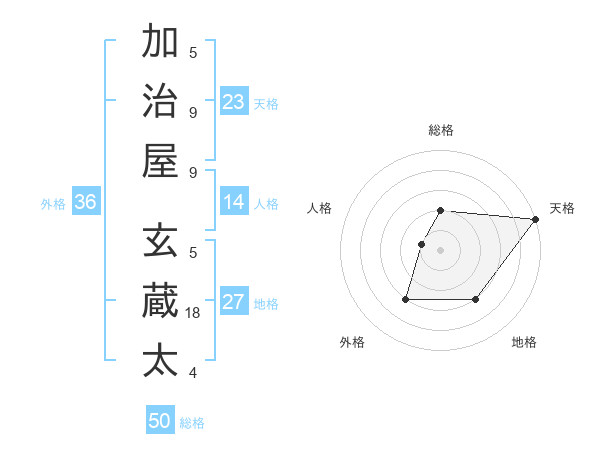 加治屋 玄蔵太さんを姓名の画数から五運を鑑定