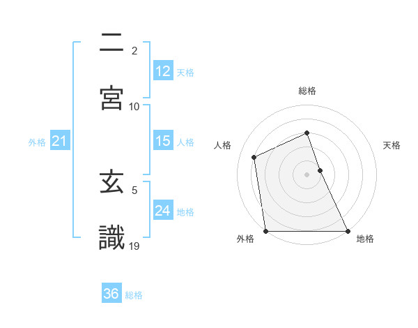 二宮 玄識さんの外格は21画の5点!