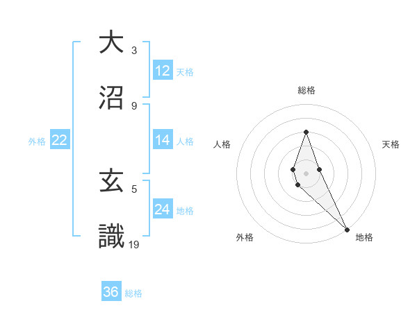大沼 玄識さんの地格は24画の5点!