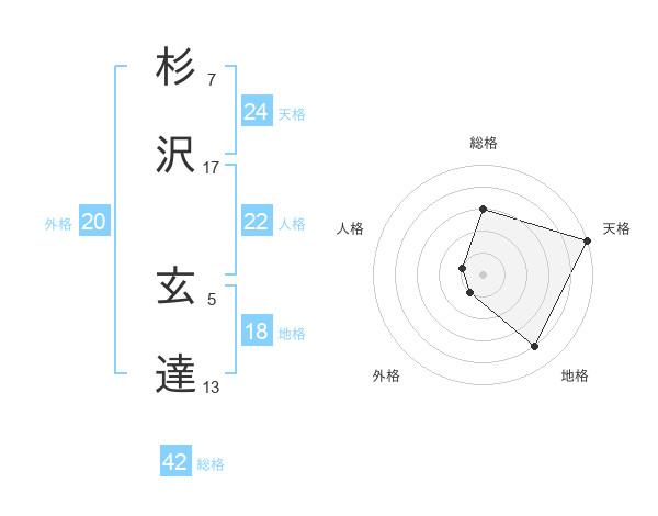 杉沢 玄達さんを姓名の画数から五運を鑑定