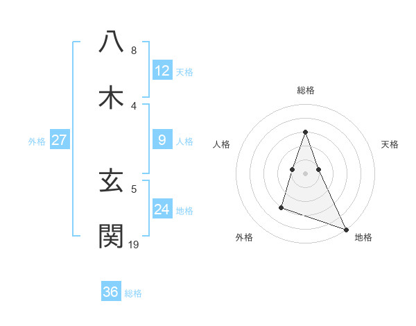 八木 玄関さんの総格は36画の3点!