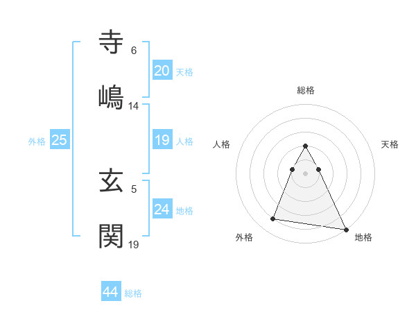 寺嶋 玄関さんの総格は44画の2点!