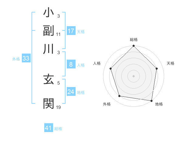 小副川 玄関さんの総格は41画の5点!