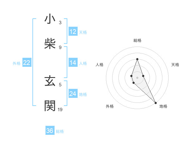 小柴 玄関さんの総格は36画の3点!