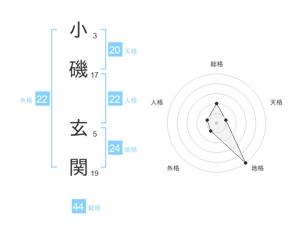 小磯 玄関さんの総格は44画の2点!