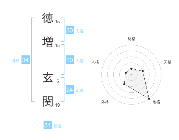 徳増 玄関さんの総格は54画の1点!