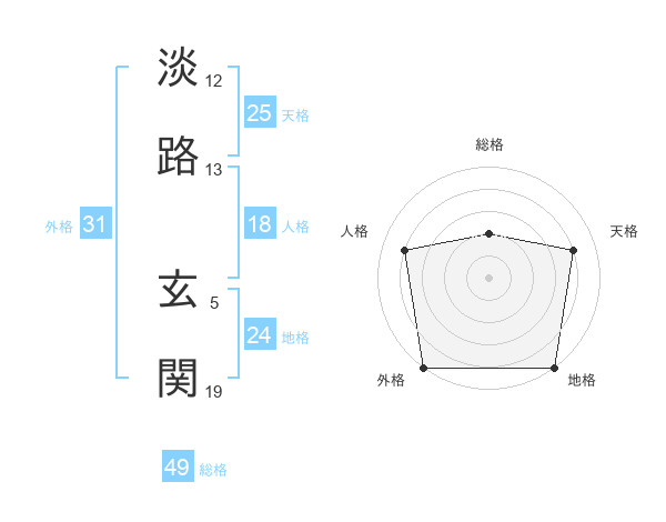 淡路 玄関さんの総格は49画の2点!