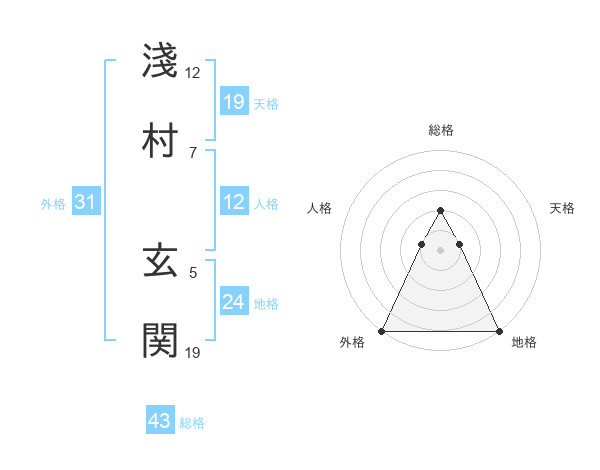 淺村 玄関さんの総格は43画の2点!