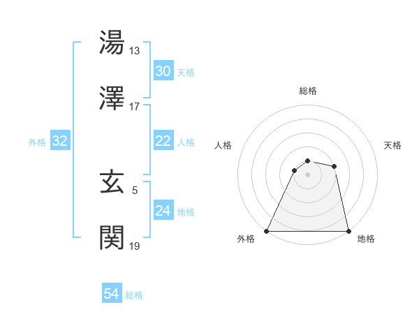 湯澤 玄関さんの総格は54画の1点!