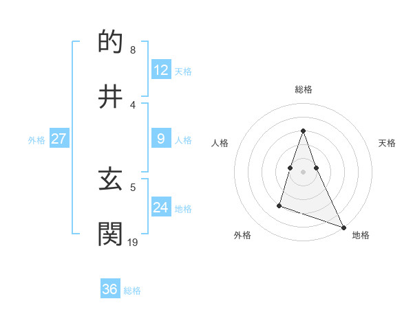 的井 玄関さんの総格は36画の3点!
